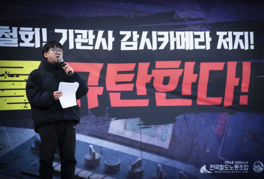 철도노조 강철 위원장은 투쟁사를 통해 “노동자의 기본권을 침해하고 감시를 정당화하는 시행령 개정 시도를 결코 좌시하지 않겠다”라며 “현장의 안전은 감시가 아닌 시스템의 개선으로 이루어지는 것”이라고 강조했다.