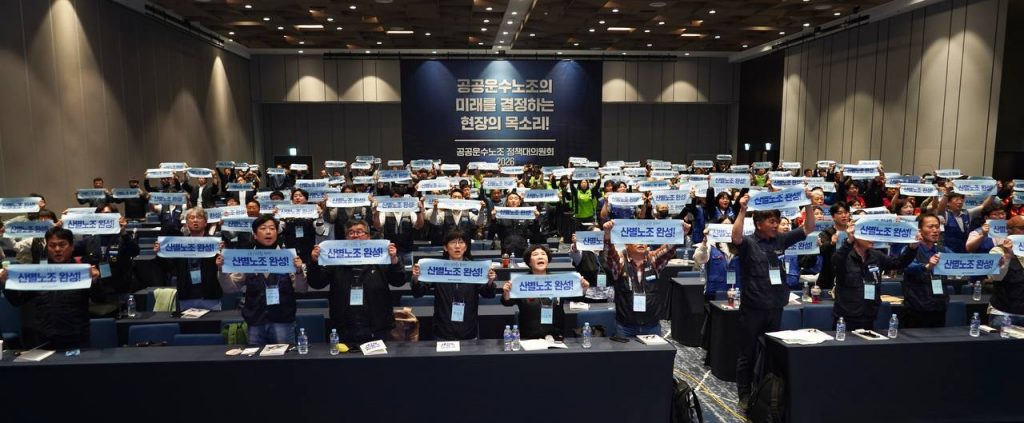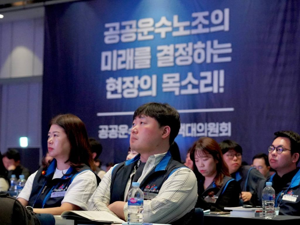 공공운수노조는 15일 오후 1시 코엑스마곡 컨벤션센터에서 정책대의원대회를 열어 현시기 산별 운동의 상황을 진단하고 중장기 산별 운동 실천 과제에 대한 토론을 진행했다. 노조는 산별운동에 대한 지향과 과제를 설정하는 한편 공영화와 모두의 단체협약 등 실천방향을 제시했다. 이번 정책대의원회에는 290여 명의 대의원과 현장 간부·대표자들이 참석했으나 임시대의원회 재적 요건을 충족하지 못해 안건 의결과 결의문 채택 없이 현장 지정토론과 종합토론을 중심으로 진행됐다.