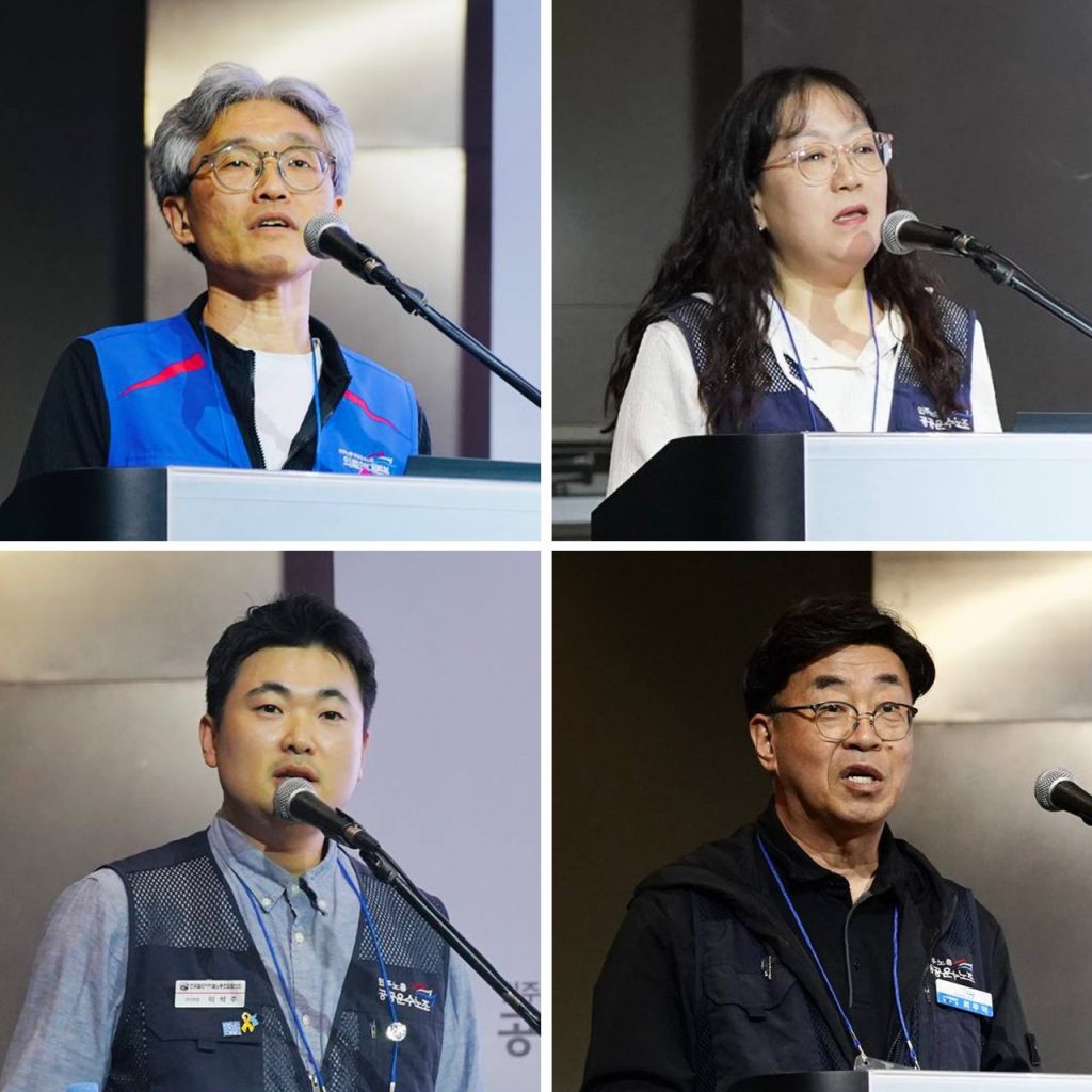 ▲ 의료연대본부 서울지역지부 윤태석 지부장(좌상), 더불어사는희망연대본부 윤진영 정책교육실장(우상), 전국철도지하철노동조합협의회 이석주 조직부장(좌하), 공공운수노조 부산지역본부 최무덕 본부장(우하)