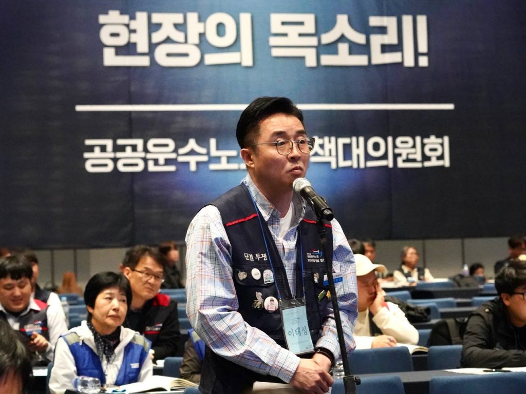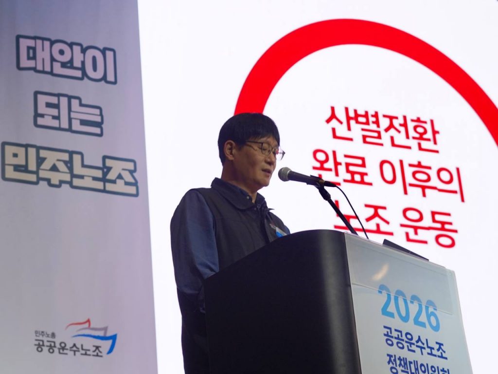 ‘공영화와 모두의 단체교섭, 철도·지하철도 함께한다’를 주제로 토론에 나선 이석주 전국철도지하철노동조합협의회 조직부장은 철도지하철 분야에서 이미 공영화 투쟁과 교섭 주체·의제 확장 실천을 쌓아왔다고 밝혔다. 서울 9호선 다단계 위탁 구조 해소, 김포골드라인 공단 설립 추진, 용인경전철 공영화 투쟁 등 민간 도시철도의 노선별 공영화 투쟁을 전개했고, 2026년 5차 국가철도망 계획 발표에 맞춰 민간투자사업 확대를 저지하는 정책 대응 사업을 준비하며, 진보당 윤종오 의원실과 함께 공공재정으로 건설된 철도·지하철의 민간위탁 금지를 담은 도시철도법·철도사업법 개정안을 발의했다. 이 조직부장은 국토부가 추진하는 기관사 감시 카메라 설치 저지를 위한 5만 입법청원 운동을 공공운수노조 산하 조직과 함께 전개한 사례를 들며, 개별 사업장 교섭으로 해결할 수 없는 산업 전체 의제는 교섭 주체를 확장하는 산별 집중 대응이 필요하다고 강조했다. 지하철 무임수송 PSO 재정지원 투쟁을 시민들과 함께하는 투쟁으로 발전시키고, 기재부·행안부·지자체 등 실질적 사용자를 교섭 테이블에 세우는 노정교섭 실현이 ‘모두의 단체교섭’의 핵심 과제임을 밝히며, 이를 실현하기 위한 산별노조 전환 완성에 함께 전진하겠다고 선언했다.