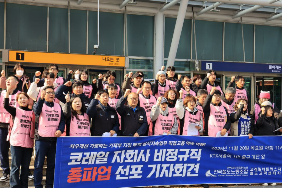 “기재부 지침이 단체교섭 틀어막아... ILO도 문제 지적했는데 정부는 2년째 미조치” 코레일네트웍스지부와 철도고객센터지부 조합원들이 공공운수노조와 철도노조…