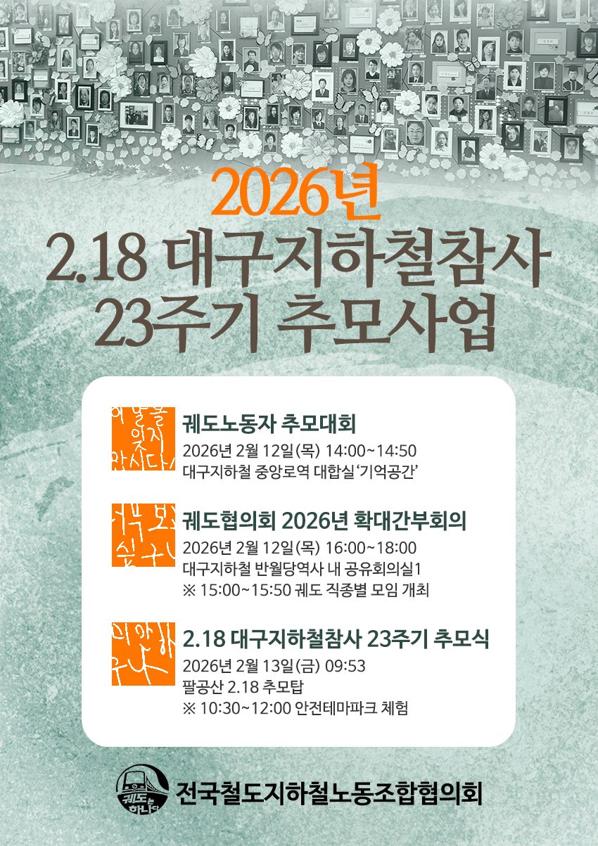 [알림] 2026년 궤도협의회 대구지하철참사 23주기 추모행사 및 확대간부회의 진행 안내