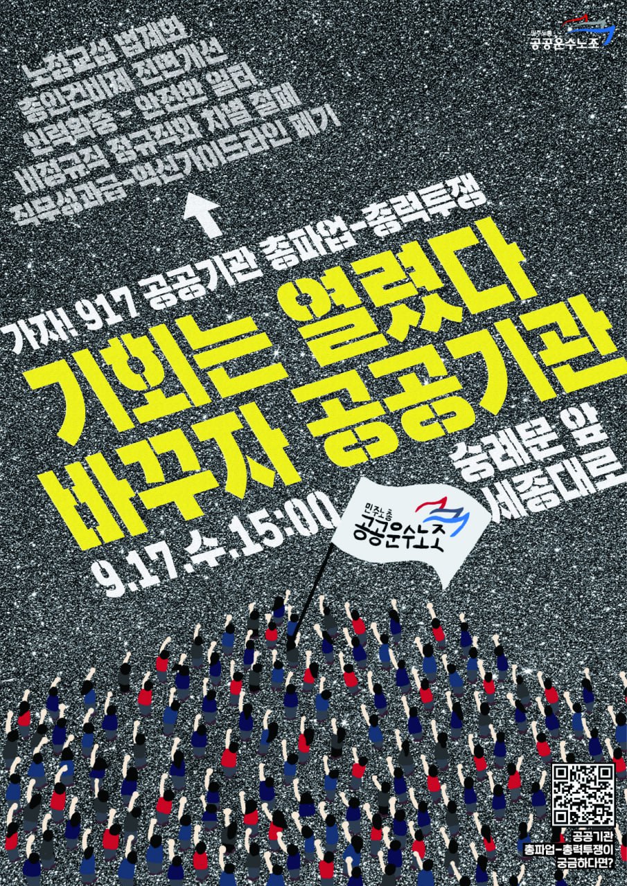 [알림] 9.17 공공기관 총파업-총력투쟁 <기회는 열렸다, 바꾸자 공공기관> 안내