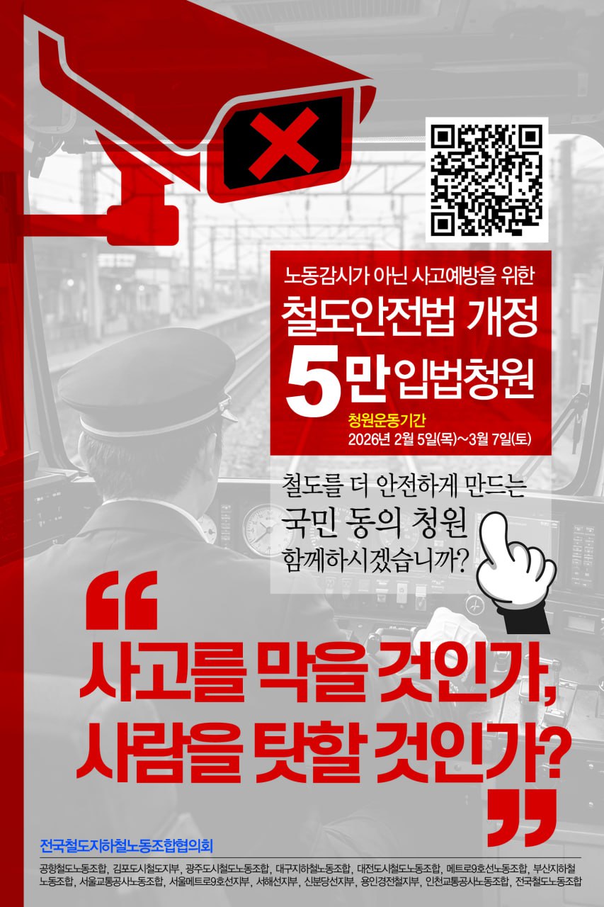[공지] 노동 감시가 아닌 사고 예방을 위한 철도안전법 개정 5만 입법청원